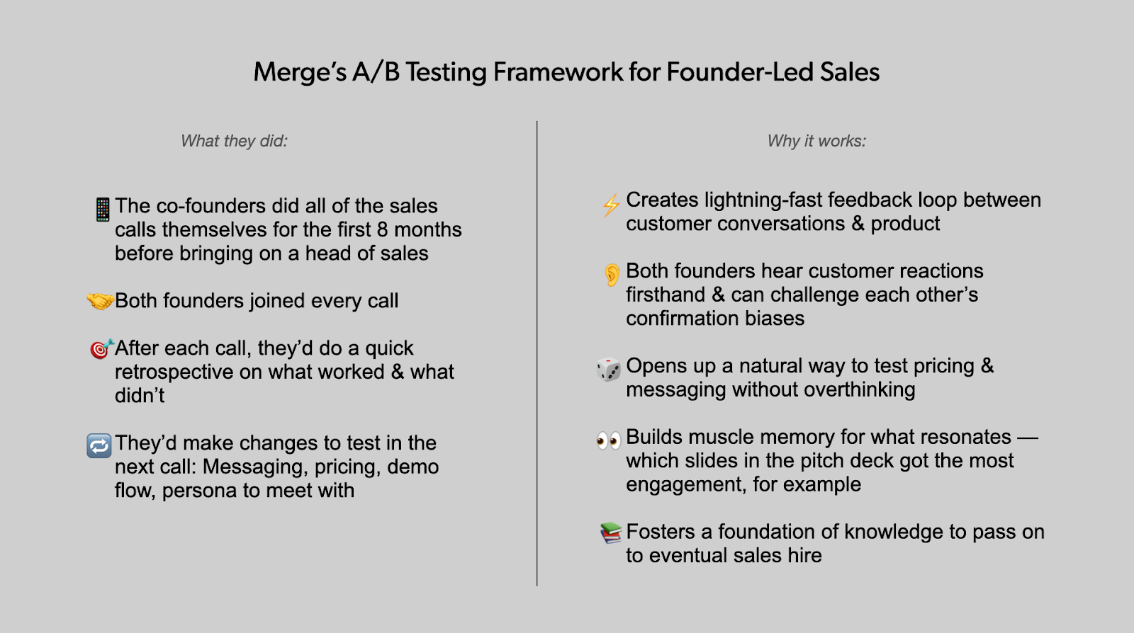 The Merge founders A/B tested everything — messaging, demos, personas, pricing. Here’s how they constantly tinkered with their sales formula:
