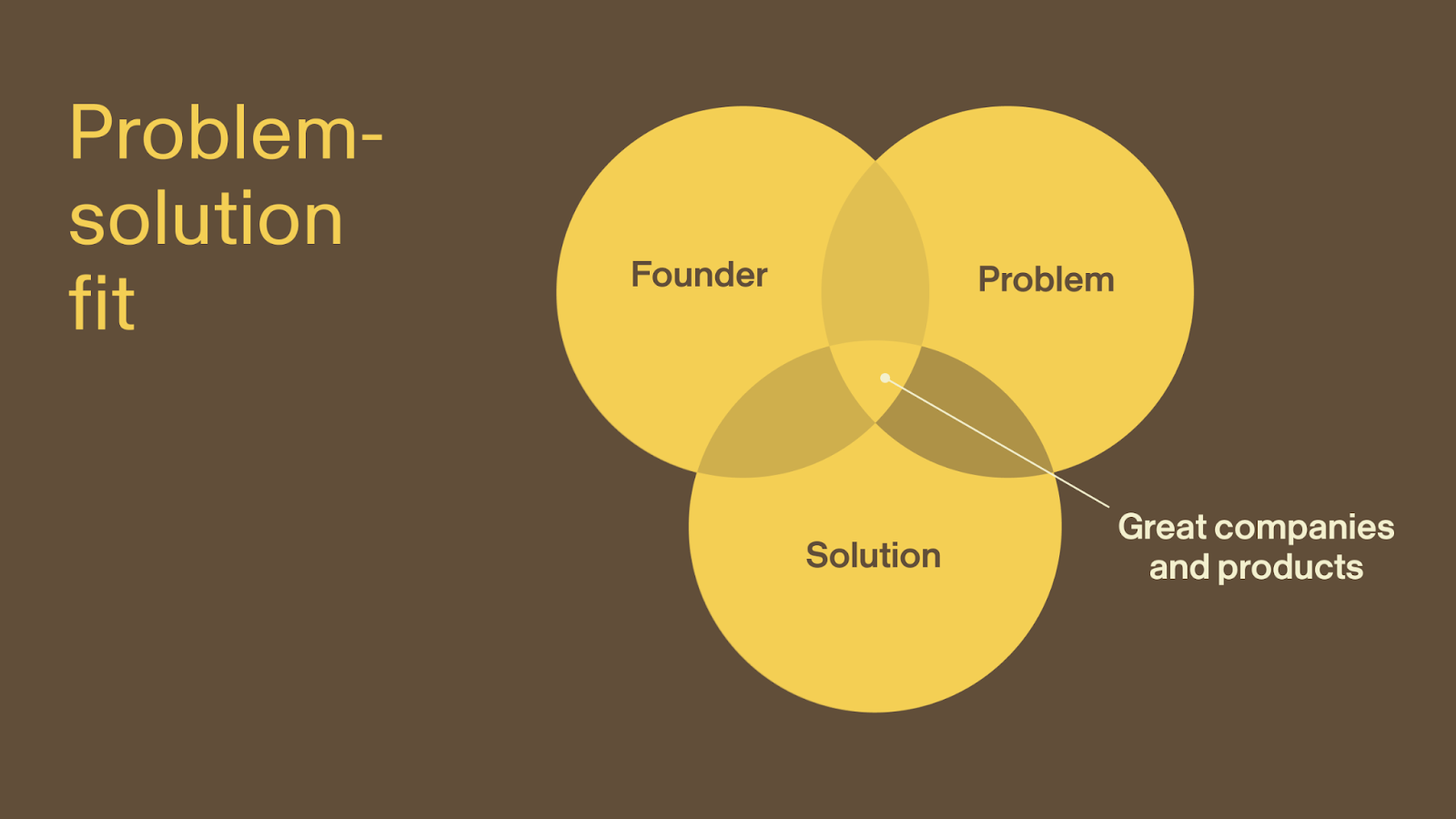 Problem-solution fit is the intersection of who you are as a founder, a burning problem you’re well-suited to solve and a solution that tackles the problem well.
