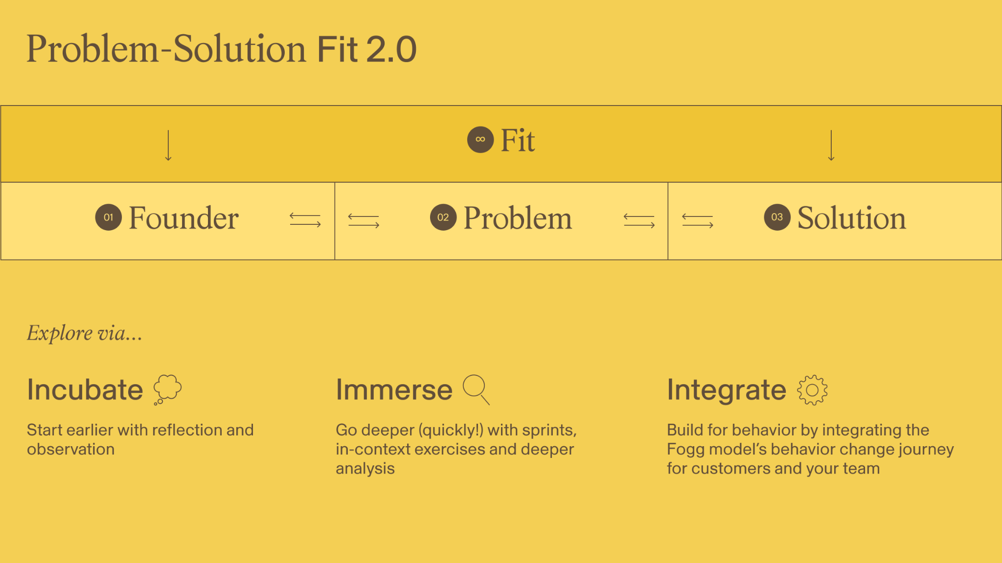 “Fit” isn’t a definitive endpoint. You’ll flip back and forth between incubation, immersion and integration as you explore different problems and solutions (and even teams).