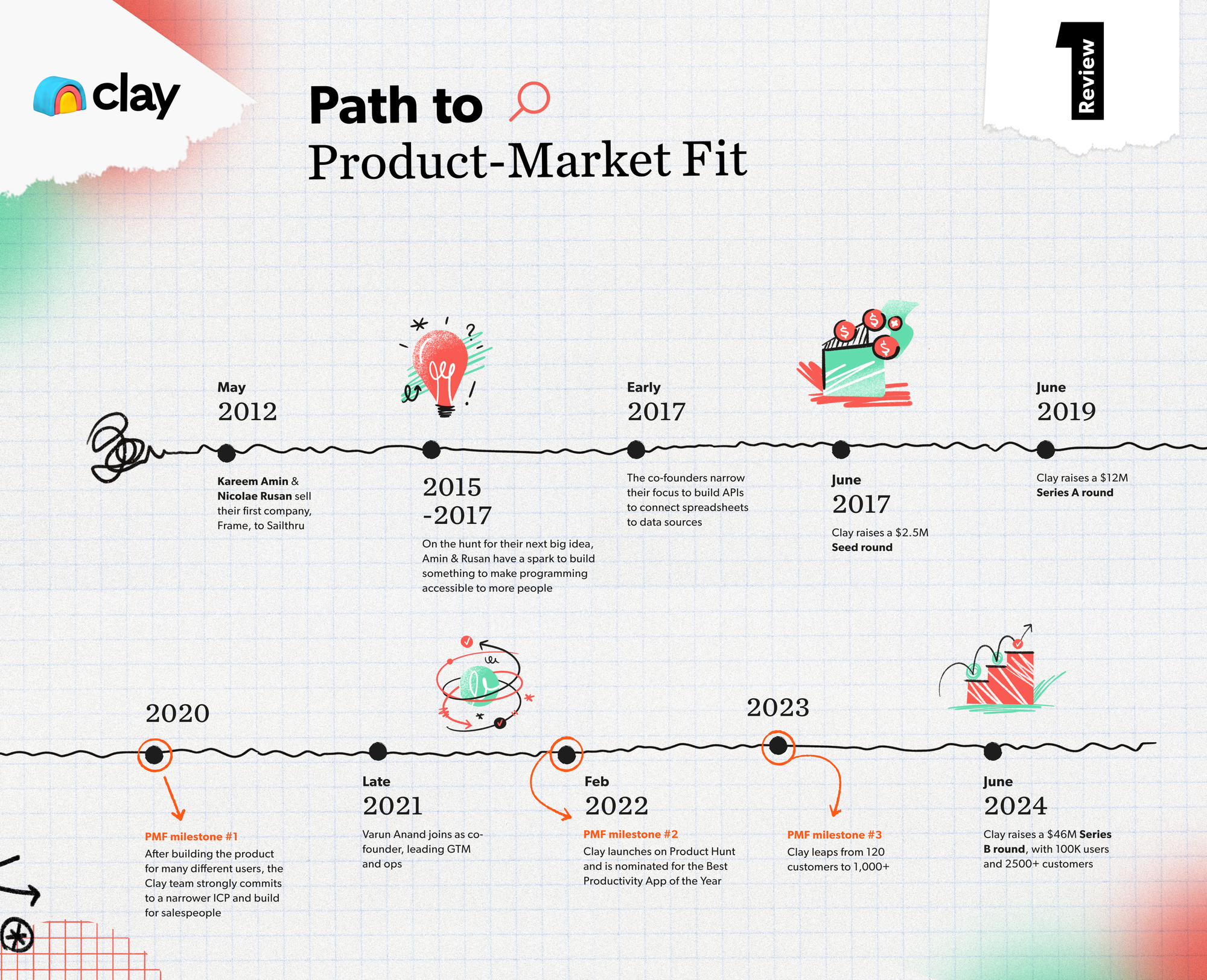 This may sound like a PMF goldmine. But the wide footprint of the product ended up working against the business in the early years. While some horizontal products (like Airtable or Notion) are able to carve out a path where they can be picked up by all sorts of different users, Clay waffled between staying horizontal and going vertical by picking a specific customer.