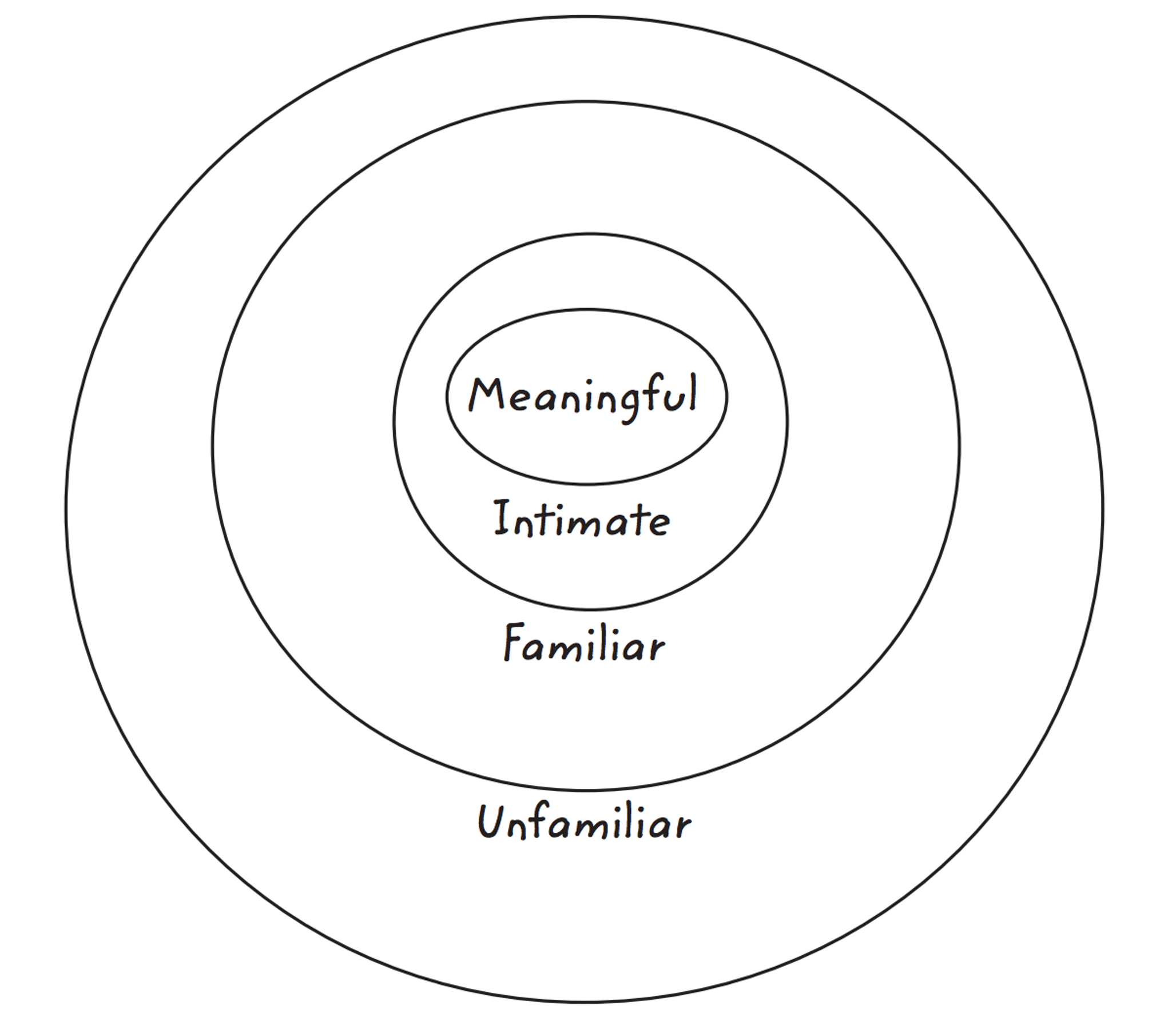 If you want to build an effective network, you must focus on what you can do for other people, not what they can offer you. The way I think about it, everyone has four types of networks: Unfamiliar, Familiar, Intimate, and Meaningful. They’re nested concentric circles: