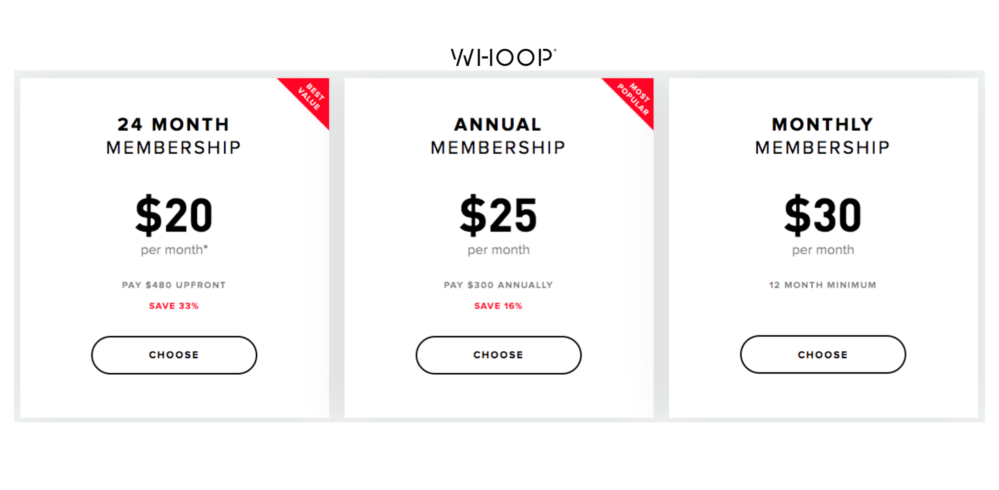 Whoop uses subscriptions to lower prices to encourage customers to opt-in, thus increasing the size of high retention cohorts and overall retention.