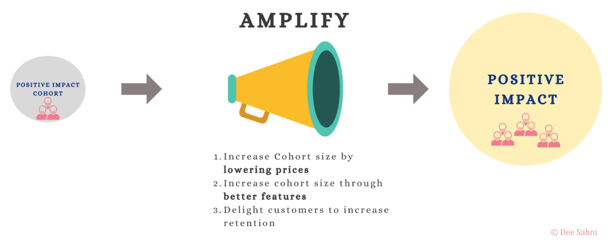 - Positive-value cohorts hint at hidden value waiting to be amplified: Usually rests in a small set of high-value customers. e.g. high price point, high retention. How can you delight them and improve their value further? Is there a new set of features or positioning to attract more of these high-value customers? In the next step, we'll amplify the value of these cohorts.