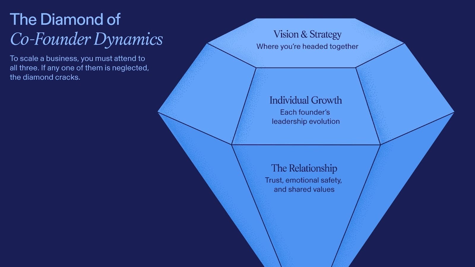 To scale your business, you have to attend to the vision and strategy, your individual growth and your relationship with each other. If any one of them is neglected, the diamond cracks.