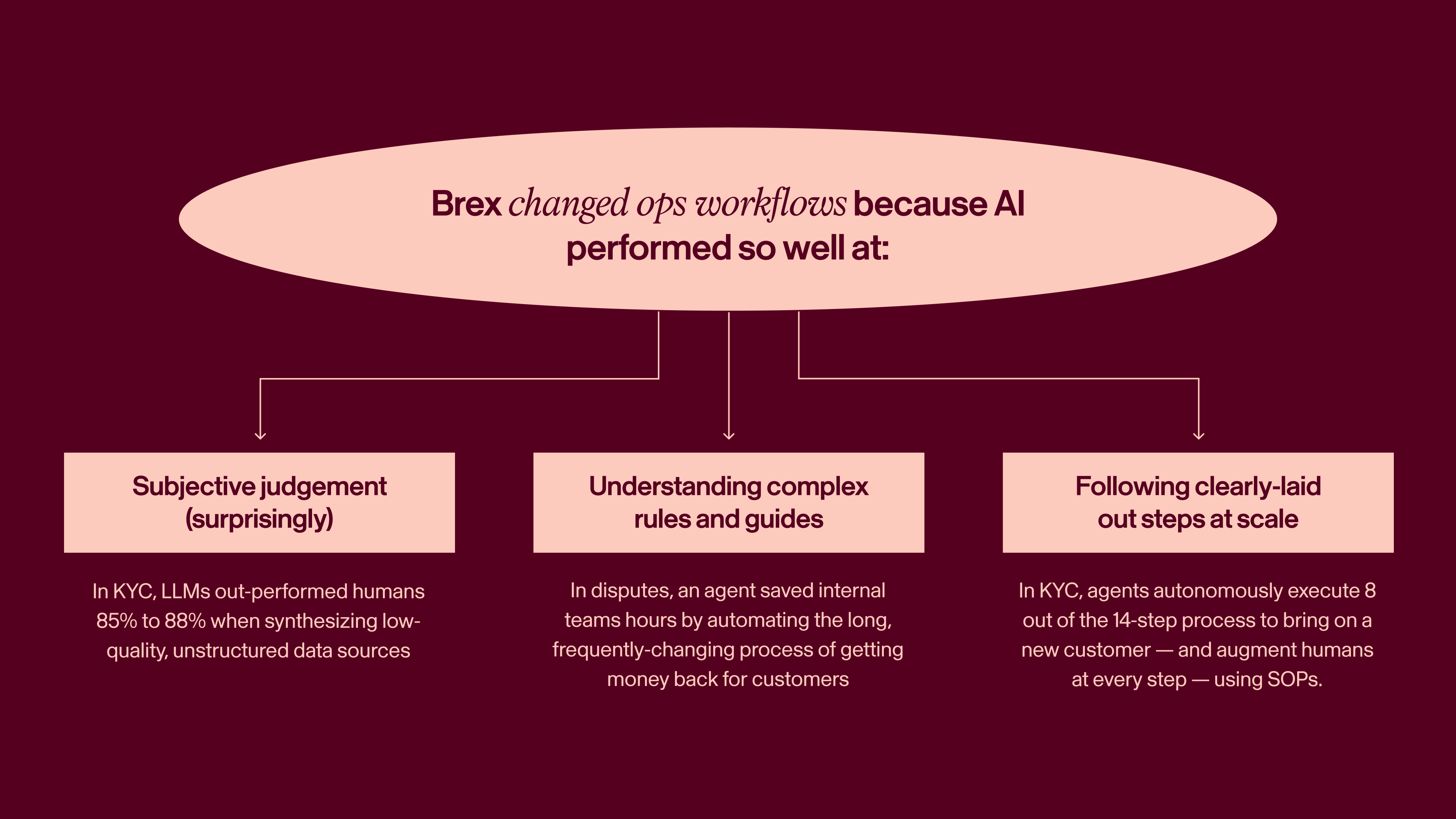 Brex’s journey has been full of learnings — ones that companies also trying to build their own AI-centered workflows can apply: