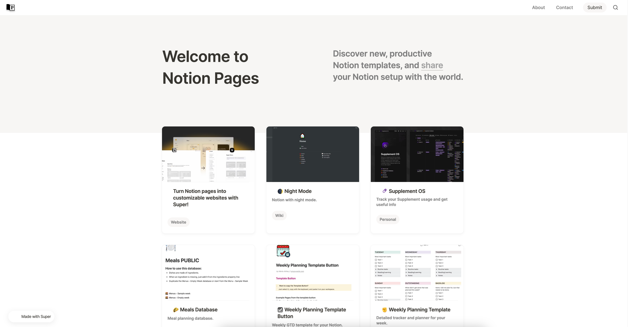 He quickly became one of the most prolific creators of Notion templates, and one of the earliest vocal champions of the product. “I started to tweet about the product regularly, and I would share different ways I used the tool,” Lang says. “Pretty soon after, I started getting an influx of questions, with folks asking me, ‘How did you build this?’ or if I could share certain pages. That was the spark to launch Notionpages.com.”