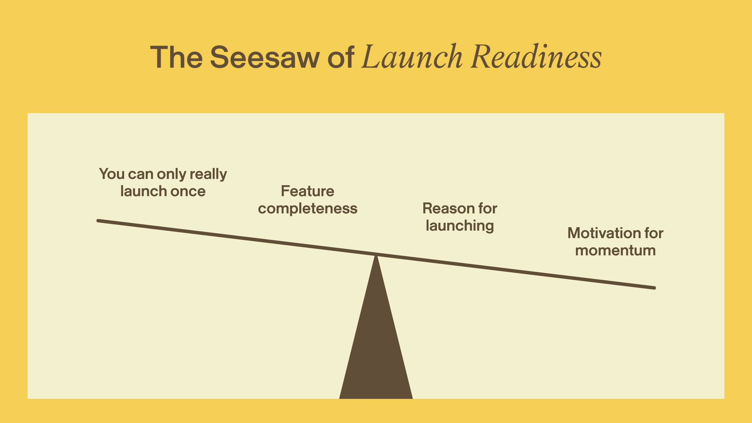 On one side, you can only really launch once. Sure, you can launch a second product or announce a fundraise later, but this is your first shot at getting your name out there. So it's tempting to wait until your product and positioning feel “perfect” — which can lead you down an endless spiral of refinement.
