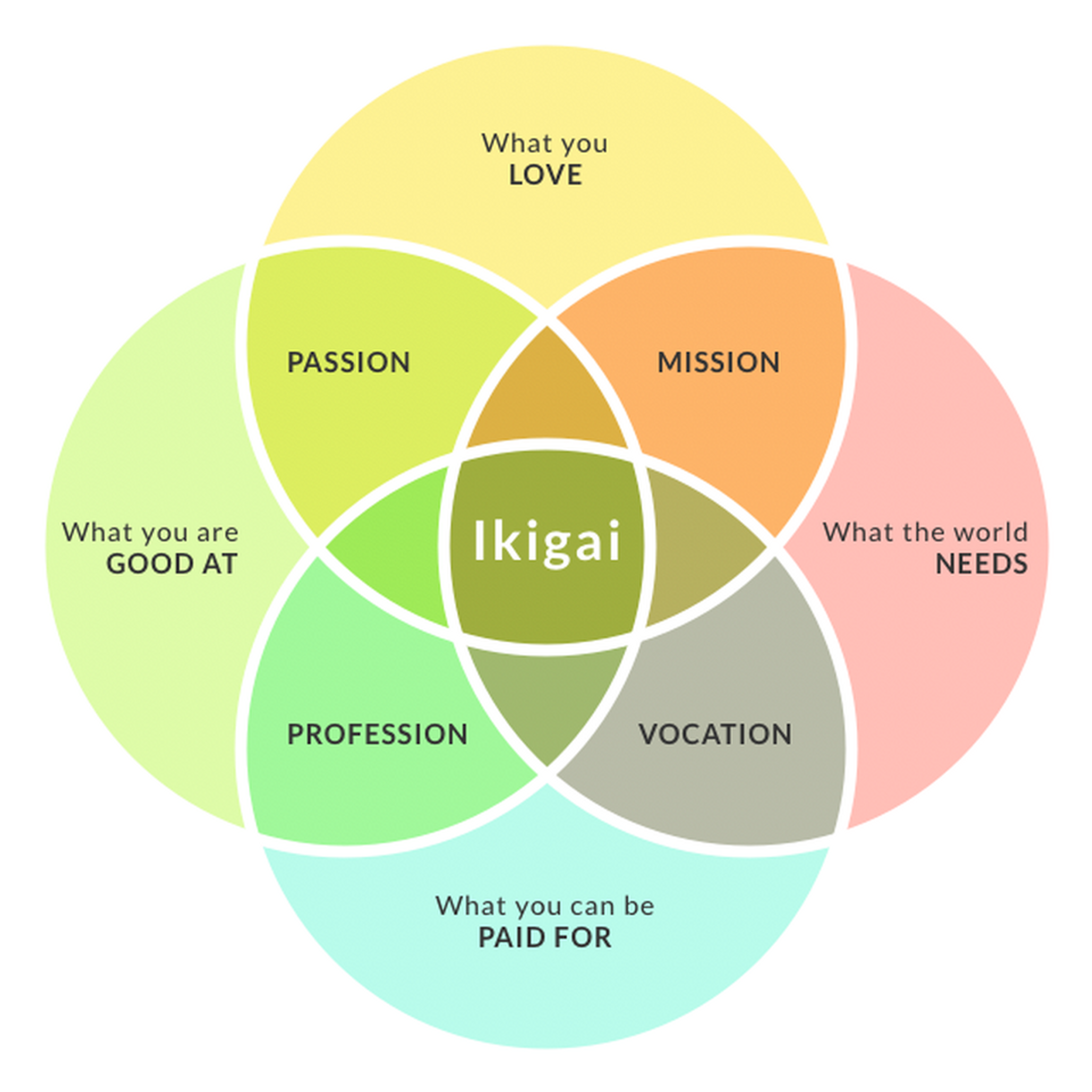 “One of my coffee contacts introduced me to ikigai, a Japanese concept for zeroing in on what gives you a sense of personal and professional fulfillment,” says Orloff. “Essentially, your ikigai, your role that gives you purpose and excitement, lies at the center of four priority areas.”