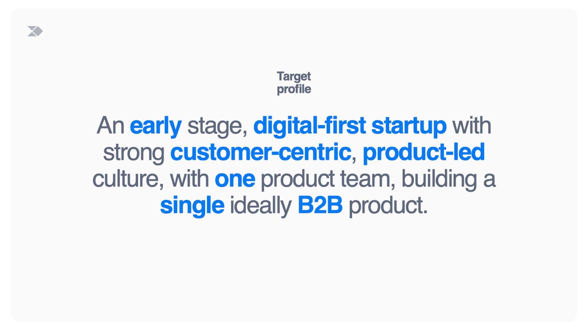 “I started to form this multi-dimensional model of the market and its different segments, and I made a very intentional decision that we were going to start with customers who fit the target profile of an early stage, digital-first startup with strong customer-centric, product-led culture, with one product team, building a single (ideally) B2B product. That helped me narrow the focus.”