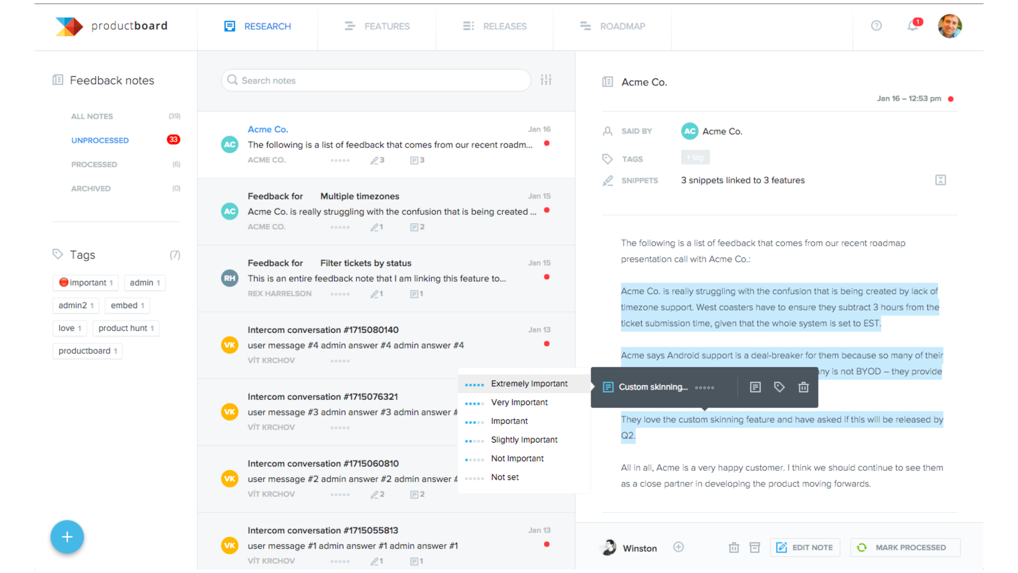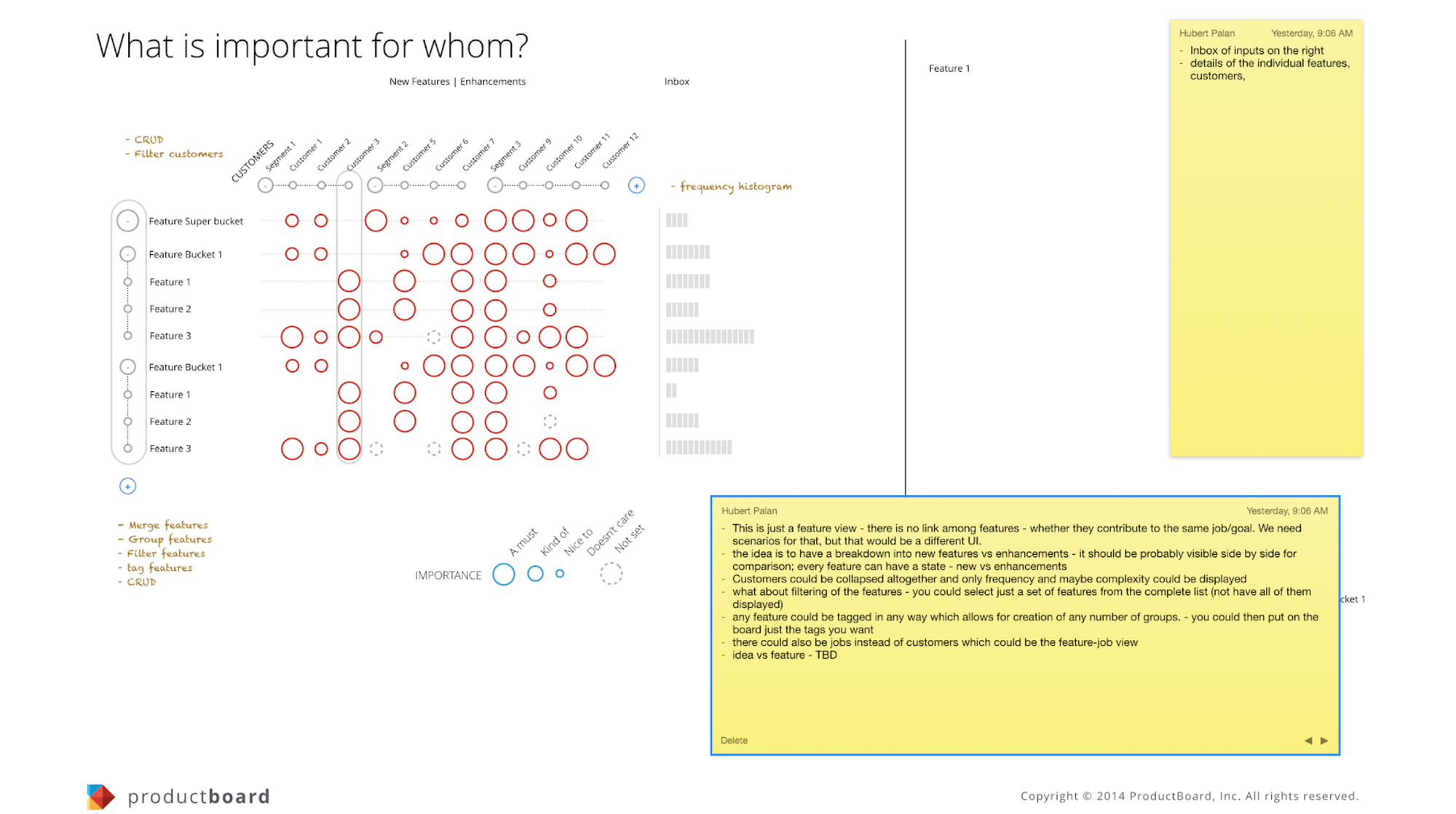 Before Productboard existed, product teams gathered customer feedback in a hodgepodge of ways: pasting a feature request from an email into a spreadsheet, or adding a bug report from a social media comment into Jira or Trello.