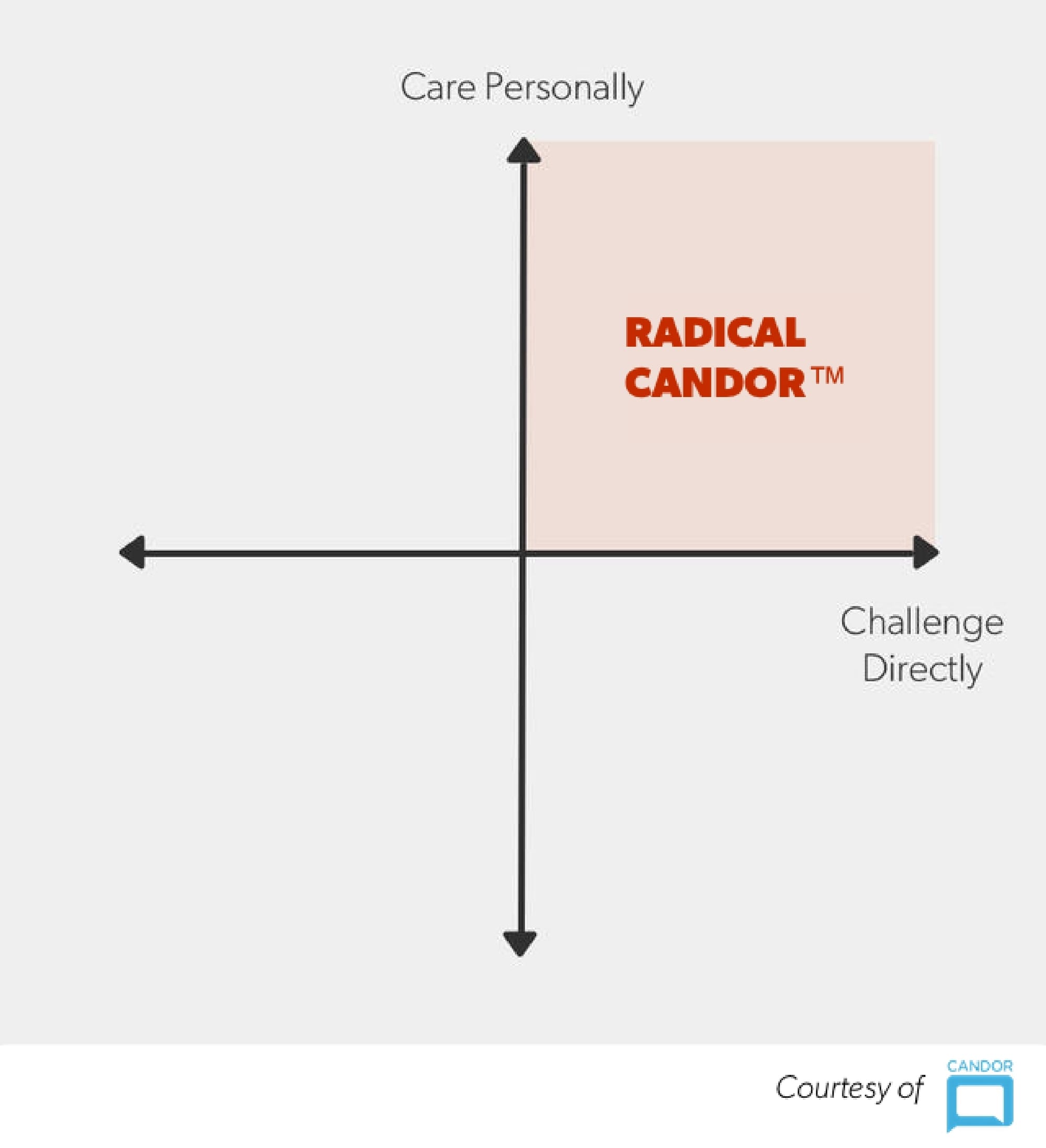 If you think this all sounds like a lot of work, you’re right. Radical candor requires you to undo the “if you don’t have anything nice to say don’t say it at all” training that’s been beaten into your head since you learned how to talk. This is hard.