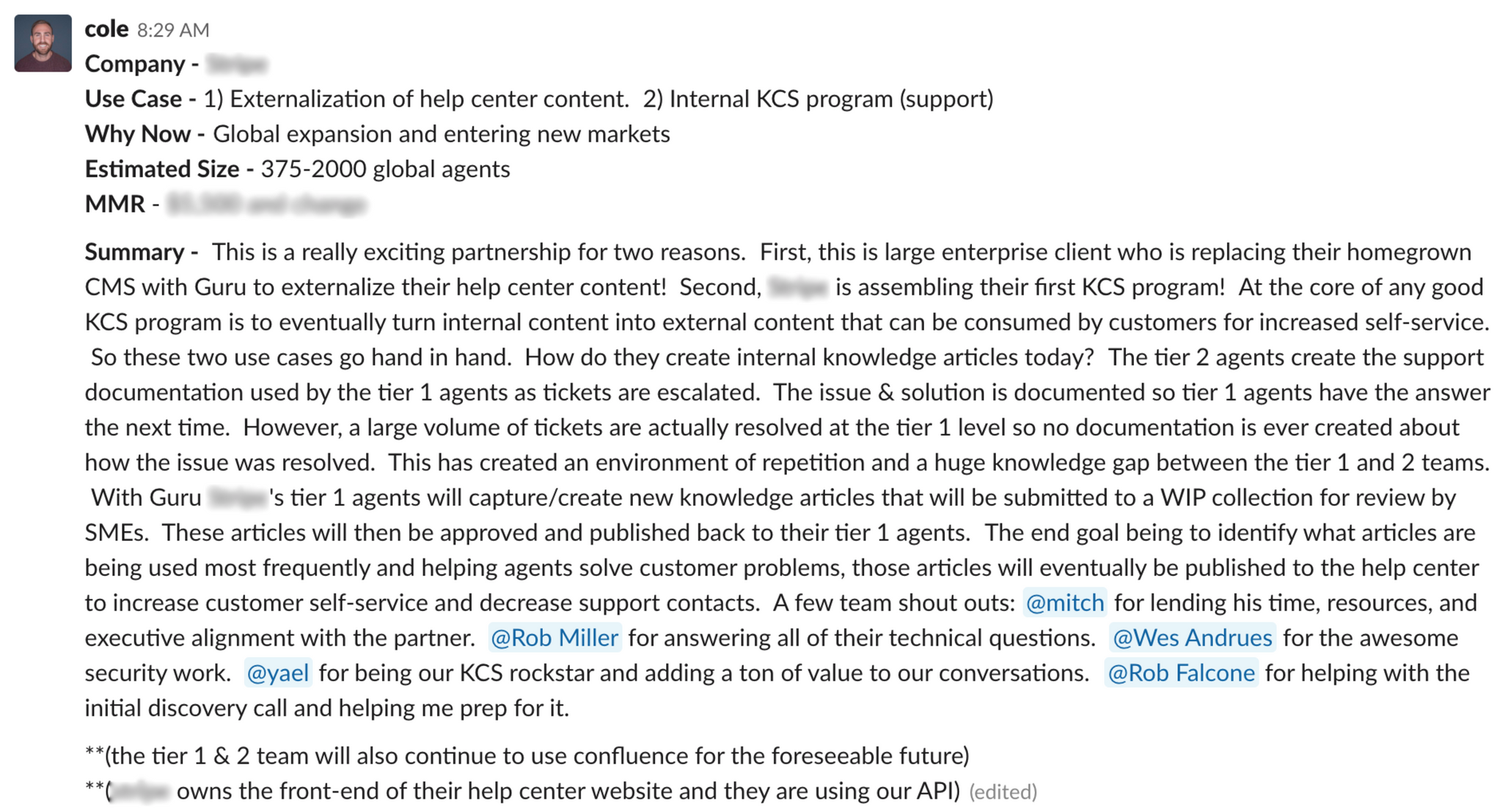 Rick Nucci likes to say he’s outcome-oriented. But the co-founder and CEO of Guru really means it. Consider the following example: Guru has two Slack channels that every employee commits to reading, #Wins (how the deal was won) and #CS-Wins ( the glowing “after” photo that closes the customer success loop). The practice of celebrating wins isn’t unique, but the startup’s approach to these channels goes deeper. “Each win announcement is written by the AE who landed the deal or the CSM who led the rollout, and they’re about five or six paragraphs long. They explicitly sketch out the line between the customer’s problem, what we did to solve it, and how it benefited them,” says Nucci. “It’d be very easy for us to dash out a post that reads ‘New customer. Had a knowledge management problem. Needed a modern wiki.’ Not only would that lead to crickets in the Slack channel, but that approach doesn’t help our designers, engineers, marketers and PMs deeply understand the problems our customers are facing.”