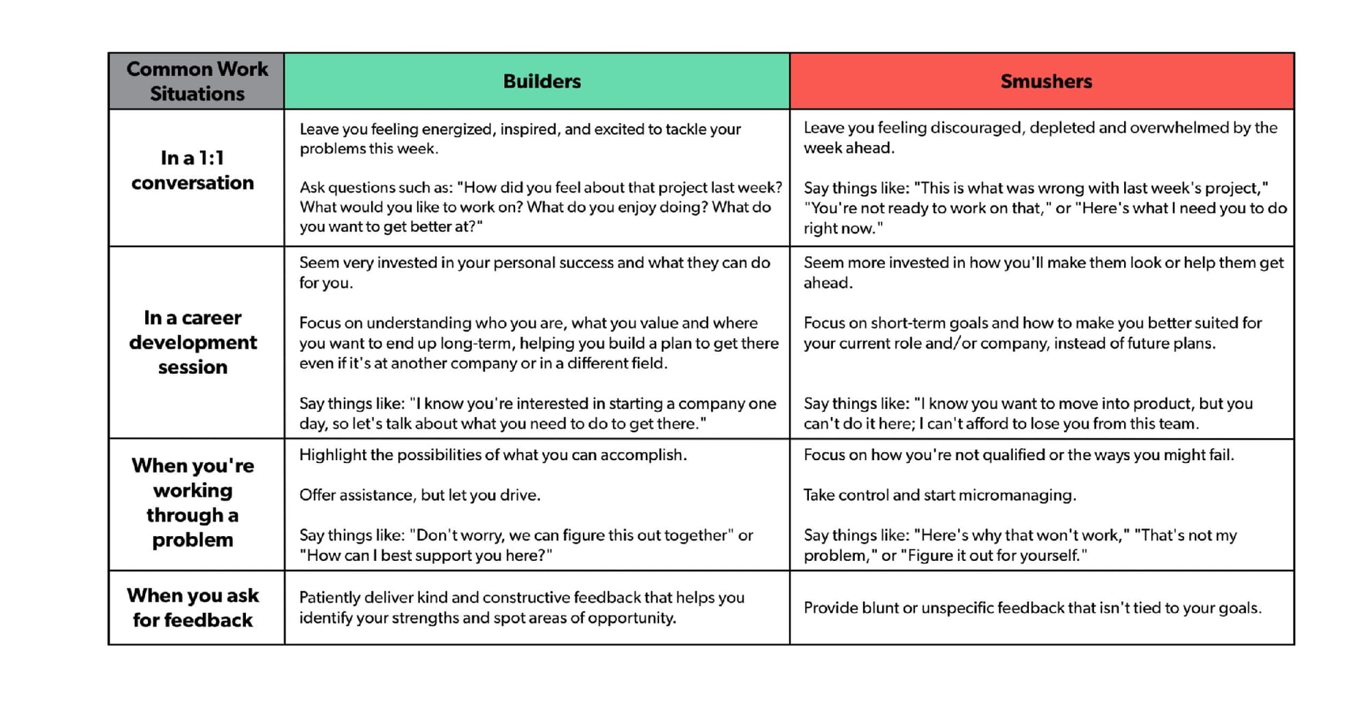 Below Ghadiyali outlines how you can spot the builders and smushers in your own career: