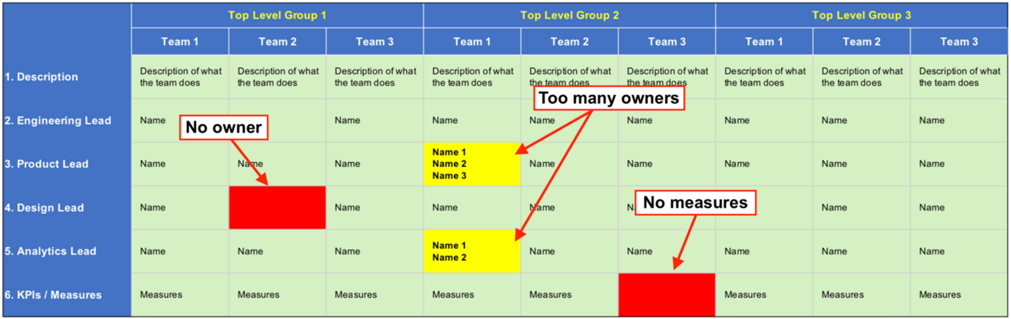 “We needed to highlight the 'who' behind every decision or project and make sure that there was only one common understanding, so we went through this exercise of building a RAM out in a spreadsheet, putting the functions or teams across the top, the tasks vertically and filling the names of the owners in the boxes,” he says. “It’s about who makes the call. Some of them had more than one name assigned, which illustrated a lack of alignment. Some of them didn’t even have any names, which highlighted a clear gap.”