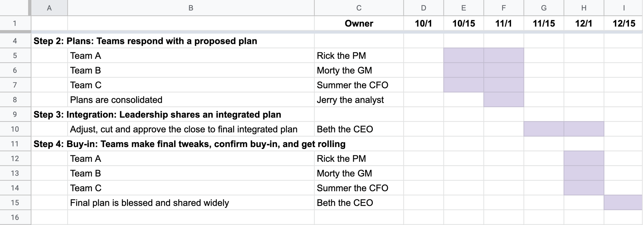 - 1. Start early: Begin to formulate your perspective before planning officially starts. Even though things will change, we find the most successful teams get way ahead of planning (and accurately anticipate Leadership’s asks). If you get it wrong, in the best case you have a ready-to-go better proposal for Leadership, and in the worst case there are valuable chunks you can still use.