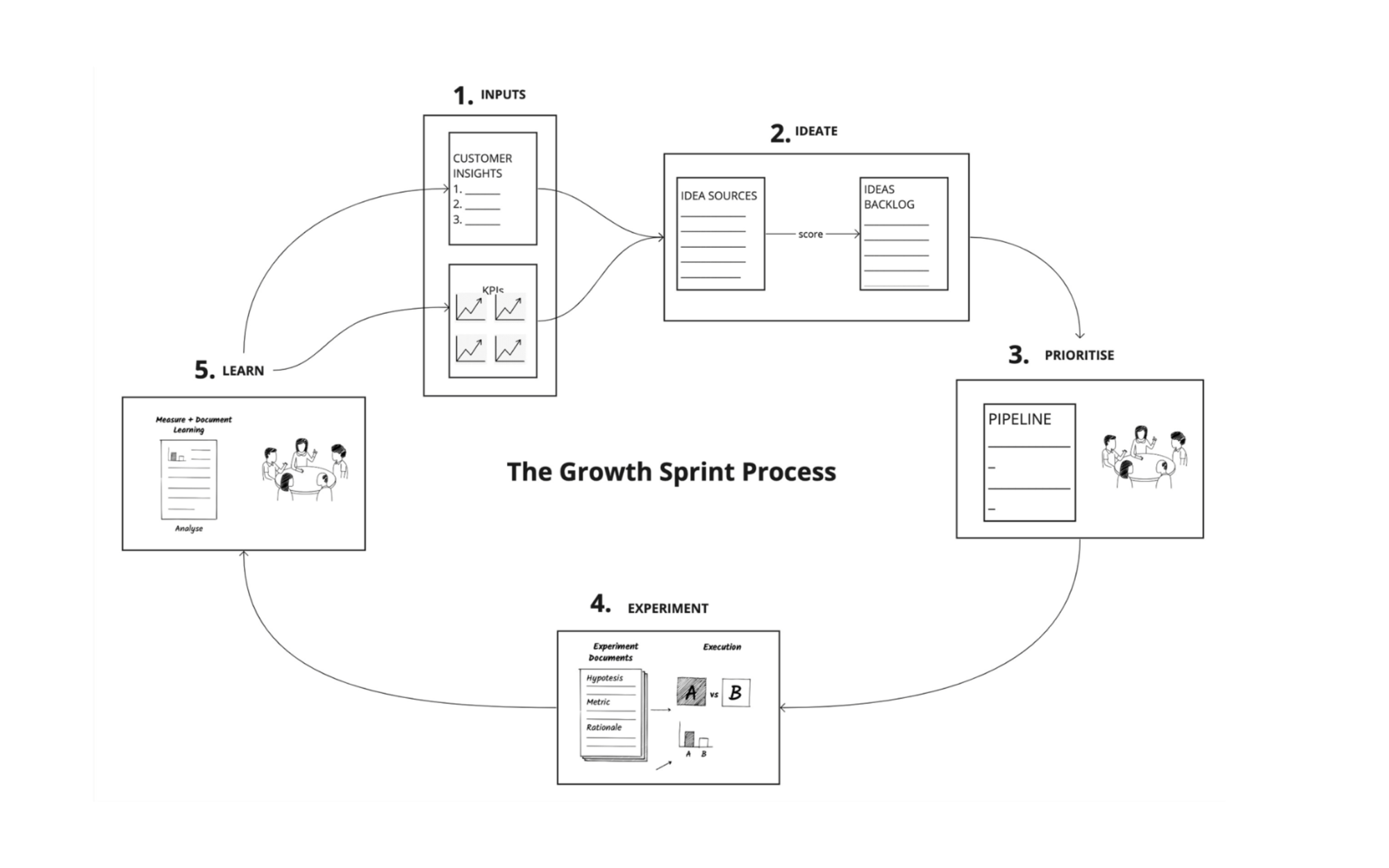 - Inputs: Gather your customer insights and the data in your growth model, plus any past experiments or ideas.