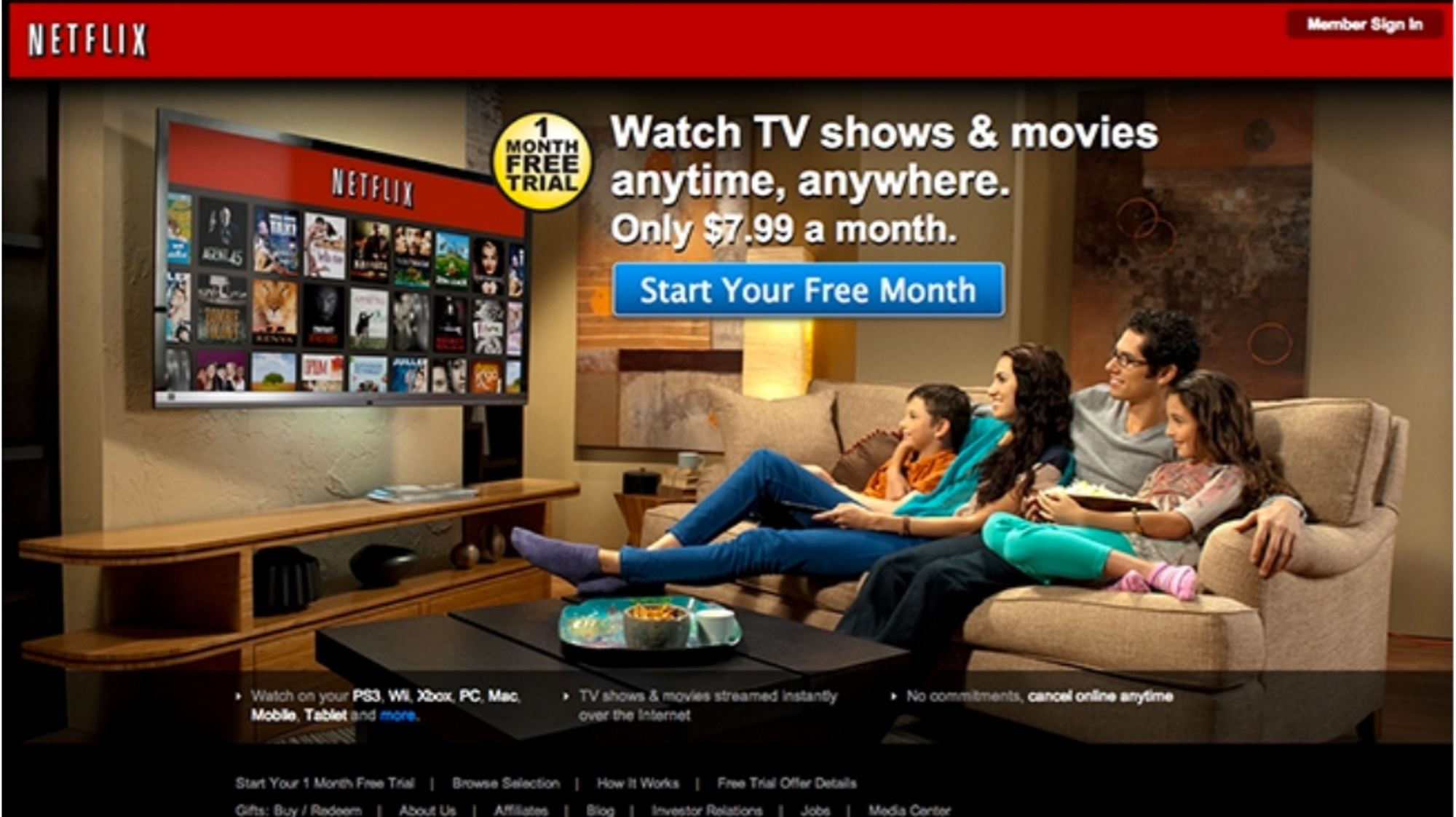 Sometimes it’s hard to find a movie everyone can enjoy on a Friday night. For individuals and families with internet access, Netflix instantly streams an unlimited number of TV shows and movies, anytime, anywhere. Simply search, browse and watch on the easy-to-use website, mobile apps, apps on game platforms and hundreds of Internet-connected devices. With one-click anyone can watch ad-free, HD quality, TV shows and movies. It’s month-to-month and you can cancel anytime. We offer a one month free trial. Netflix, it’s movie enjoyment made easy.