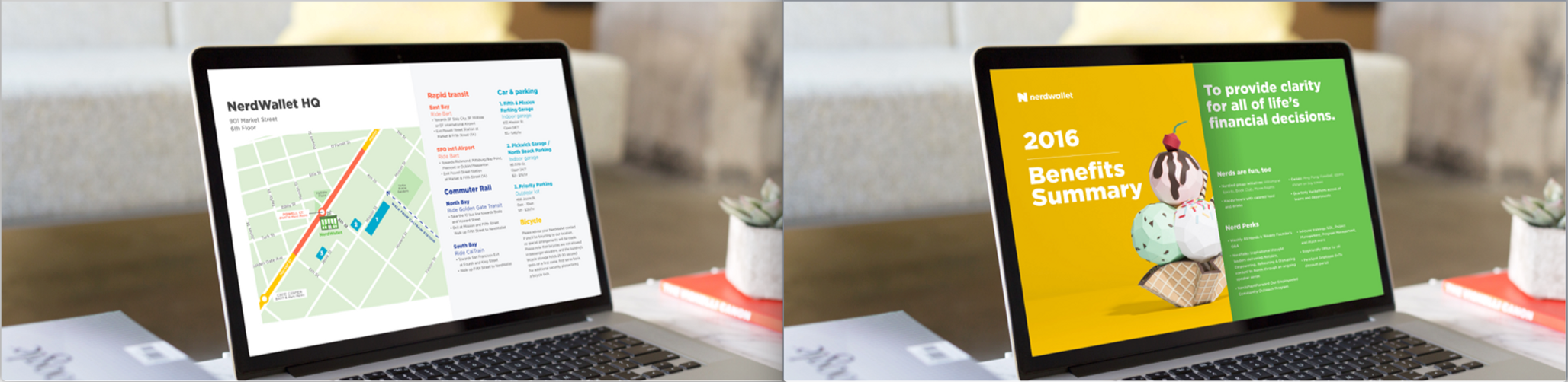 - Literature for loved ones. Before a candidate receives an offer, NerdWallet shares their Benefits Summary: A helpful guide for people to take home to their families, and say, “Hey, I’m considering this offer. Let’s look through this together.”