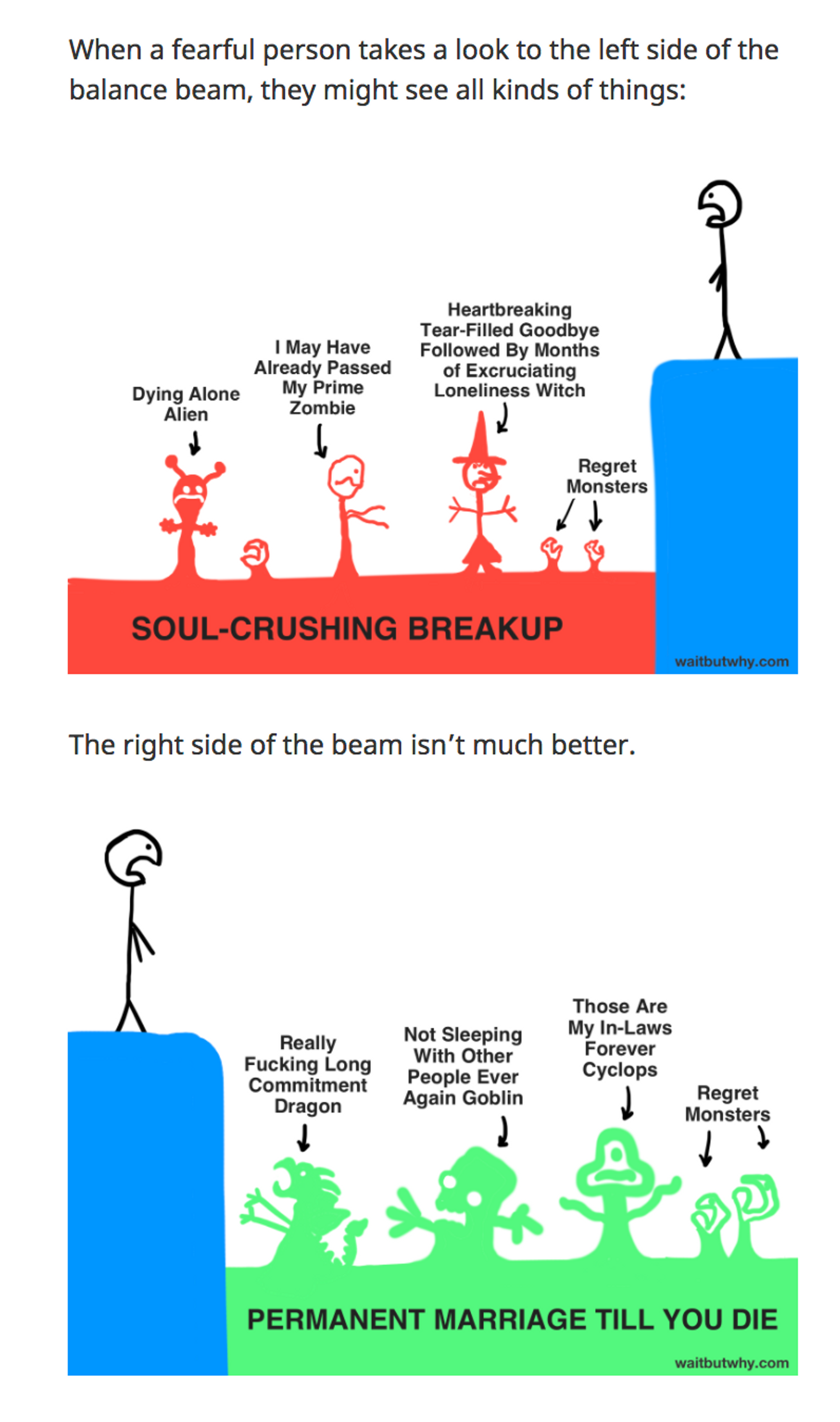 To show different approaches to topics, Urban juxtaposes his procrastination, cryonics and SpaceX posts. “So with procrastination, there are core forces that battle against each other in my head. So rather than describe the psychology and the structures of the brain where they come from, let's make it what they really are: very memorable and funny characters that’s way better than just explaining the psychology of something — and way more fun to read and memorable. There’s the instant gratification monkey or the panic monster. Their names were descriptives and they were drawn with humor so readers remembered them,” says Urban. “But with cryonics, there's no characters. I could have said, ‘Here's Joe. Joe wants to live this long.’ But that cuteness would have gotten in the way of the job: the conception of death. You don't need Joe; he’s a distraction, I just need to look the reader in the eye, talk to them, and explain some shit. With SpaceX, there was a lot to talk about so I need to get people to buy in at the very beginning by giving them a hint where we’re going because some people will drop off because it’s too long. But people will start to get hooked if they understand the arc of the story — and that it’s gonna be really fun at the end.”